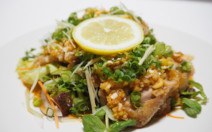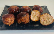 シャキシャキの生姜がたっぷり入った大きな肉団子。コクのある甘酢タレでお召し上がりください。ご飯にもお酒にもぴったり。テイクアウトもできます。