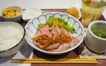 いの町産の風味豊かな生姜をたっぷり使った自家製タレは豚バラ肉との相性も抜群です。極上の丼を仁淀川の景色と一緒にお召し上がりください。