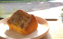 ふわふわのシフォン生地の中にはシャキシャキのきざみ生姜が入っています。絶景のリバービューカフェで、爽やかな味わいと生姜の食感をお楽しみください。